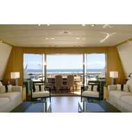 In addition to the elegant salon and helm another living area is located on the forward main deck. It can be used as dining or conference room or, owing to a large TV, as entertainment area. |
