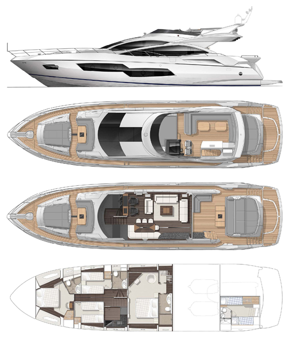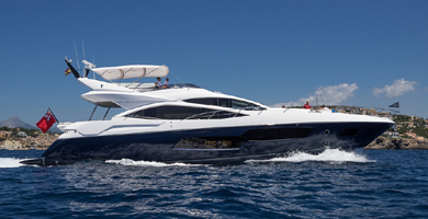 One of the latest models of the Sunseeker sport line with 4 spacious cabins and highly adaptable ouside areas on the foredeck, in the cockpit and on the large flybridge. The captain and his crew will spoil you during your cruise through the Balearics on this luxurious yacht. |