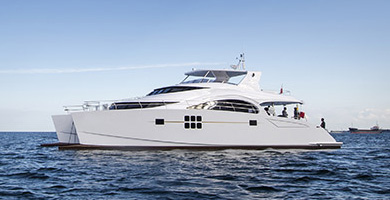 This Sunreef Power Catamaran 70’ has been created with custom made design, great comfort, seaworthiness, long range and low fuel consumption. The catamaran has grey hulls and white superstructure, mixed with stylish and alluring inside and exterior areas, properly fitted to leisure and socialising. |