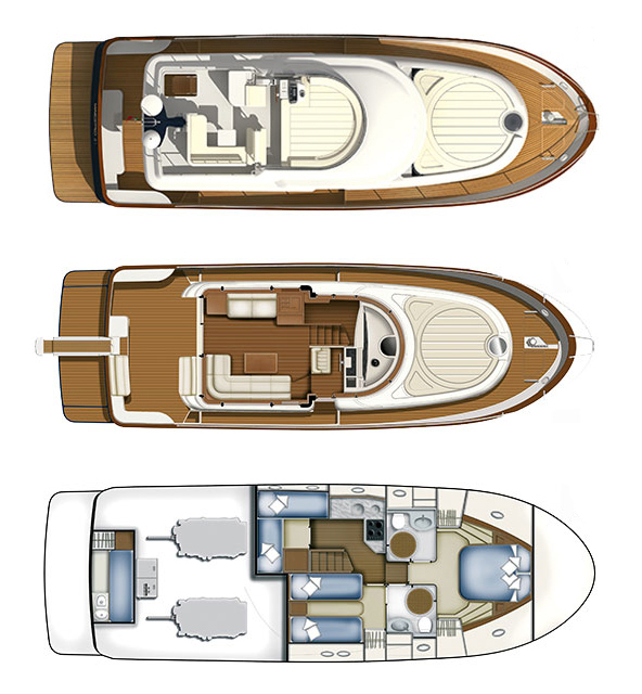 The Apreamare Maestro 51 is a very seaworthy boat in her class providing guests with a lot of space in different exterior areas, spacious cabins and a deck saloon with a fantastic all-round view. |