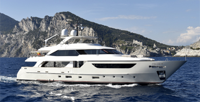 The SANLORENZO SD126 is a four-decked motor yacht with a semi-displacement hull allowing exclusive cruises for up to 12 guests cared by an experienced 6-headed crew. |