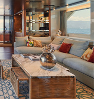 Her five staterooms accommodate 12 in a full-beam master (with spa shower system) on the main deck and two VIP queens and two twins on the lower deck. |
