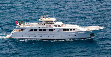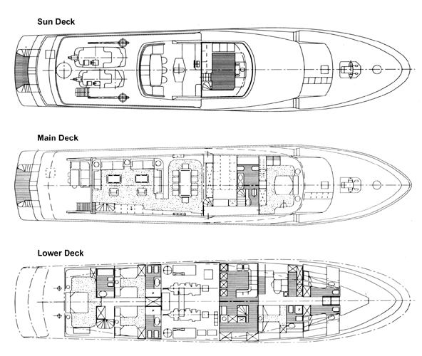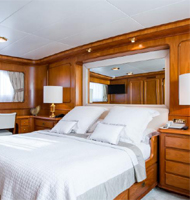 Exterior living is well-appointed over 2 levels, allowing guests a most enjoyable charter experience. The shaded aft deck of this CODECASA boasts a comfortable seating area with alfresco dining and direct access to the salon as well as to the extended swim platform. On the foredeck are raised sunpads for the sun worshipers.