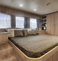 Der hier angegebene Preis bezieht sich auf eine Basisversion. Darin enthalten sind die hier aufgeführten 2 Motoren, 3 Generatoren, Stabilisatoren, die Wasseraufbereitungsanlage und die Aufteilung in 5 Gästekabinen sowie eine Crewkabine.