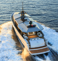 A highly efficient hull at a target cruising speed of 12 knots. This ARCADIA 85 burns approximately 9 litres per nautical mile at 12 knots, which is around 100 litres per hour – very little compared to competitors of a similar size. Rumpf und Deck