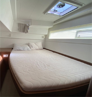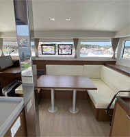 Diese LAGOON 40 wurde 2021 in Betrieb genommen und ist unter Deck in 4 Kabinen mit 4 Badezimmern unterteilt. Die wichtigsten Extras sind eine „Essential Equipment Configuration“ mit B&G Elektronik, stärkere Motoren, 2 x 45 PS statt 2 x 29 PS und ein Beiboot mit Außenbordmotor sowie das dazugehörige Kransystem am Heck.