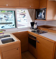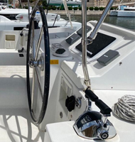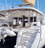Sehr gut ausgestattete und beständig gewartete LAGOON 450 F mit 4 Kabinen und einer ALPI TEAK Innenausstattung. Wesentliche Optionen sind stärkere Motoren, elektronische Motorsteuerung, 11 kVA Generator, Klimaanlage, elektrische Winschen, Koje in jedem Bug, zusätzliche Navigationselektronik von RAYMARINE, versenkbarer TV Monitor etc. und dazu das „Essential Pack“ der Werft.