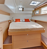 2 identical forward cabins with queen-size berth (2.04 x 1.63 m at widest point), 2 drawers under berths, 2 space storages, hanging locker & shelves, opening deck hatch and port hole