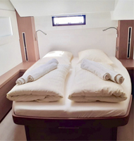 Hier bieten wir eine sehr gut ausgestattete LAGOON 46 als 4-Kabinen Version mit stärkeren Motoren, Klimaanlage (auch als Heizung nutzbar), einem 11 KVA Generator, höherwertige Segelausstattung mit elektrischen Winschen und Watermaker, um nur einige Extras zu nennen, zum Kauf an.