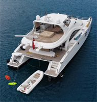 Bei dieser SUNREEF POWER 70 handelt es sich um eine Eignerversion mit 4 Kabinen. Im Gegensatz zu der Standardausführung wurde dieser Katamaran unter anderem mit wesentlich stärkeren Motoren, 2 x MAN mit 800 hp, und mit größeren Dieseltanks, 16.000 Liter anstatt 5.000, ausgerüstet, um Langstreckenfahrten an jeden Punkt der Erde zu ermöglichen. Seine Seetüchtigkeit hat er bereits bei einer Atlantiküberquerung eindrucksvoll bewiesen.