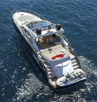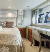 Motorleistung / Anzahl Motoren / Kraftstoff 1200 hp / 2 / Diesel Raumaufteilung / Kabinen ![]() The full width master cabin is located at the center of the ship; the V.I.P. cabin at the bow, fitted with an independent bathroom (same as the main cabin), is located next to a smaller cabin featuring two bunk beds. Motor (Motoryacht) bzw. Takelage und Segel (Segelyacht)
