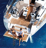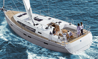 This Bavaria 46 Cruiser has four cabins and is equipped with the strong 75 hp engine and a bow thruster. The spacious teak-laid cockpit with twin helm stations has an enormous electrically-controlled fold-down-transom.